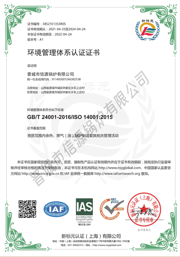 環(huán)境管理體系認證證書